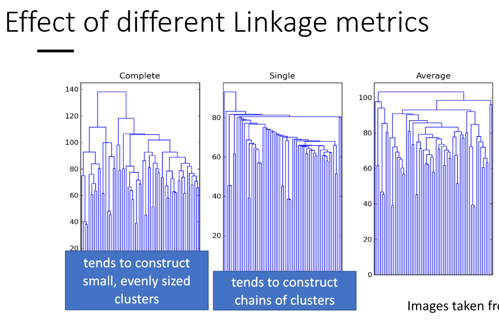 Hierarchical Clusters können in einem Dendrogramm dargestellt werden. Dabei wird der Effekt verschiedener linkage Arten besonders gut sichtbar.