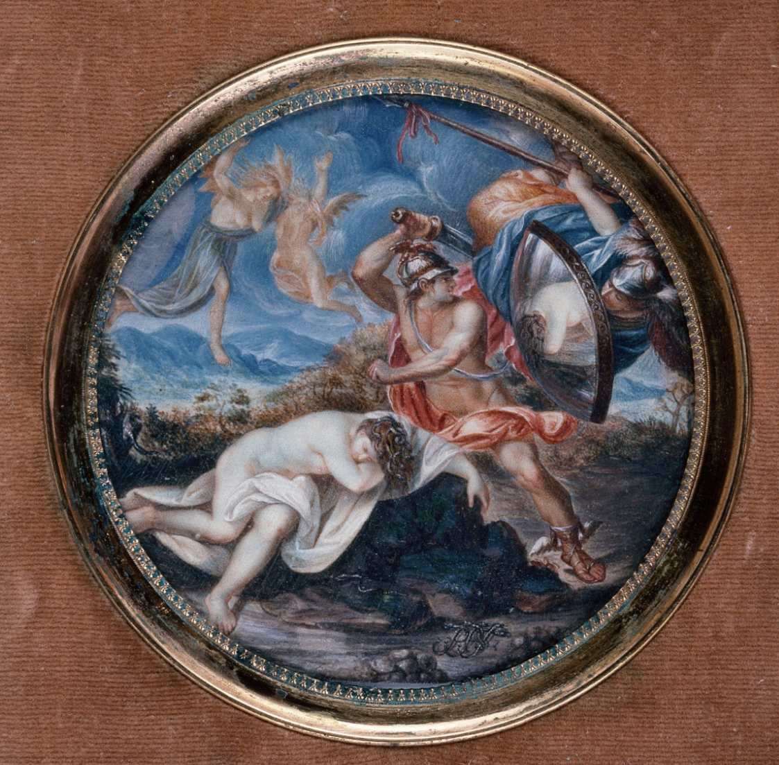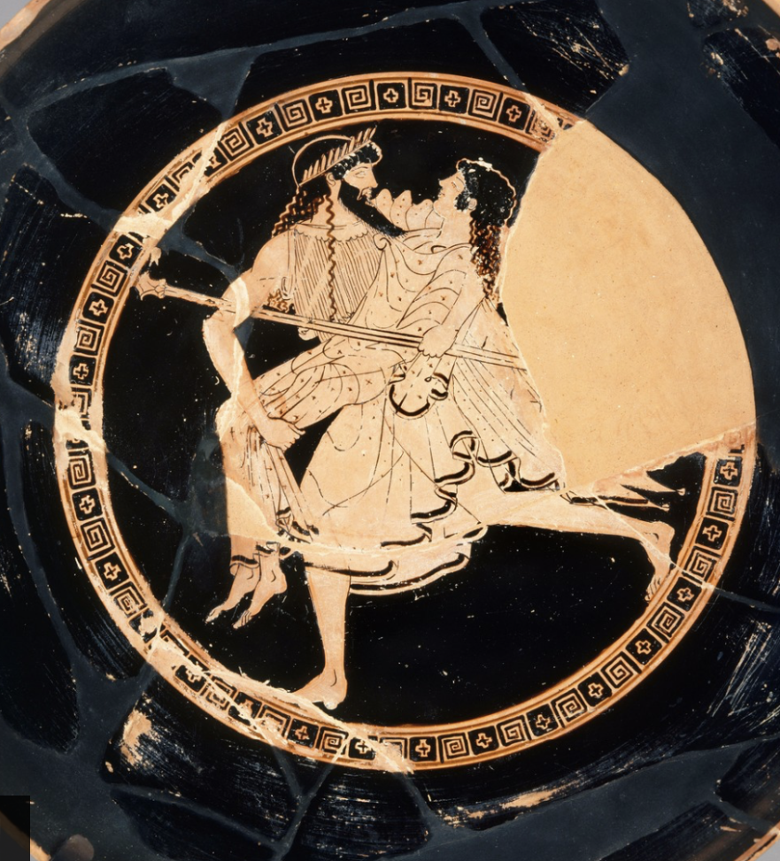 Zeus is on the throne and Thetis is asking Zeus to kill off the Greek soldiers because that’s what her son Achilles wants and Zeus owes her