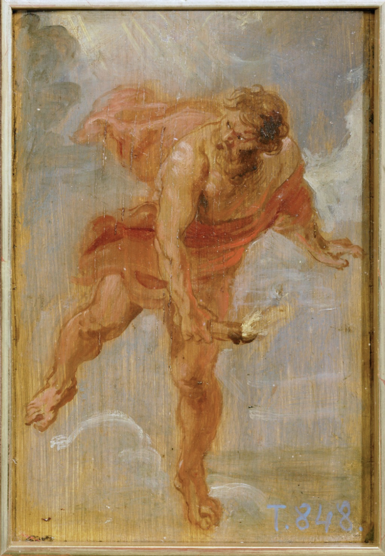 Prometheus is being punished by Zeus for stealing fire to give to mankind by chaining him up and letting vultures eat him for eternity
