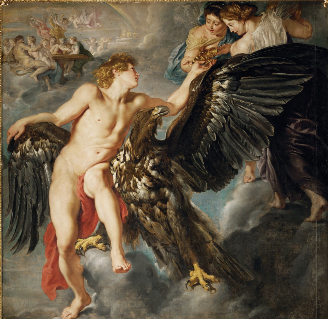 Zeus is abducting Ganymede in his eagle form to make him his own personal cupbearer