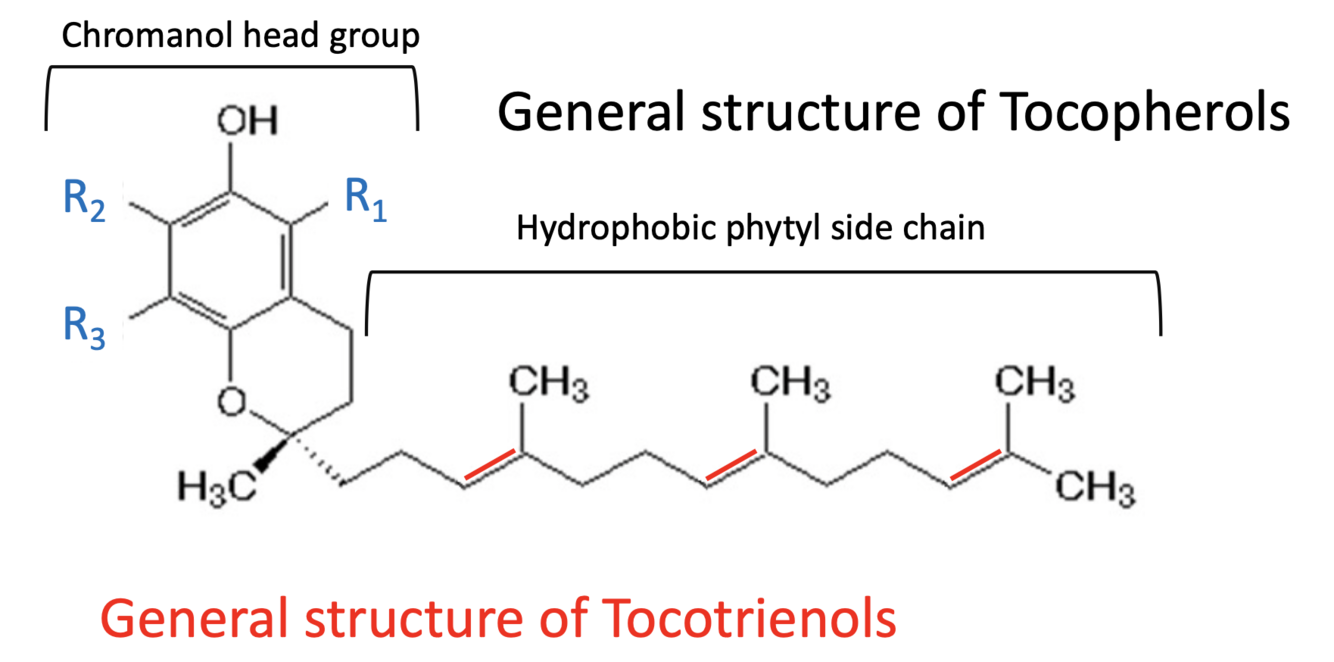 * phytate chain (FA chain) which has double bonds for the tocotrienols but not for tocopherols