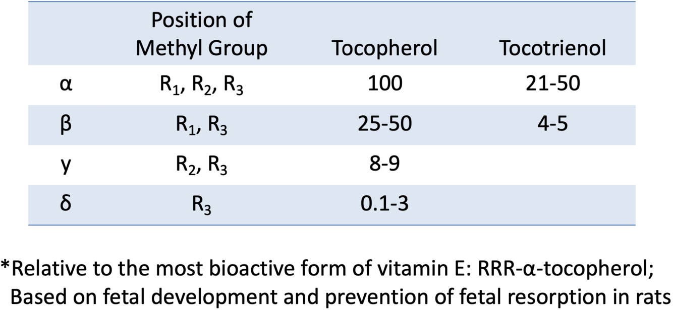 Structure and Activity of Naturally- Occurring forms of Vitamin E