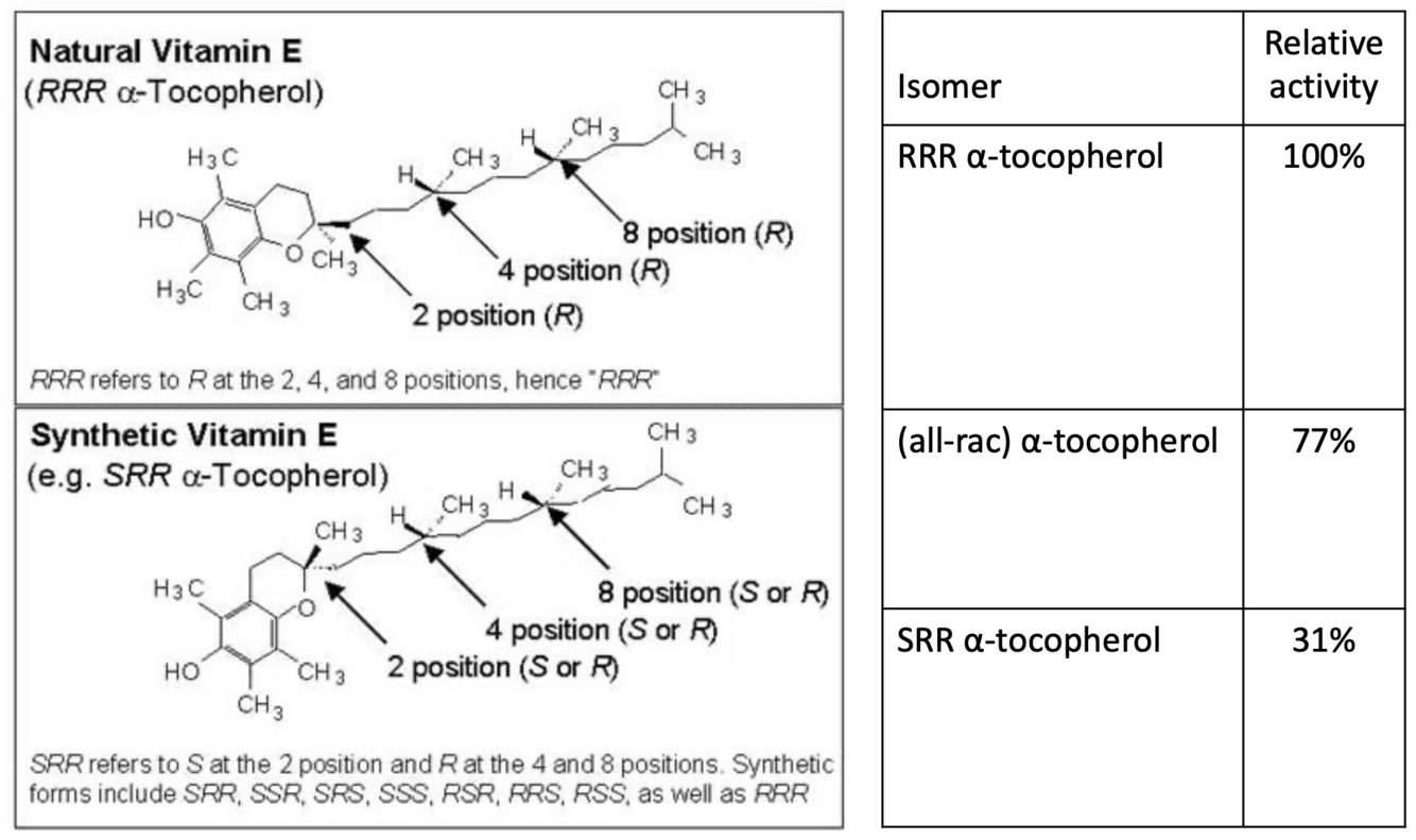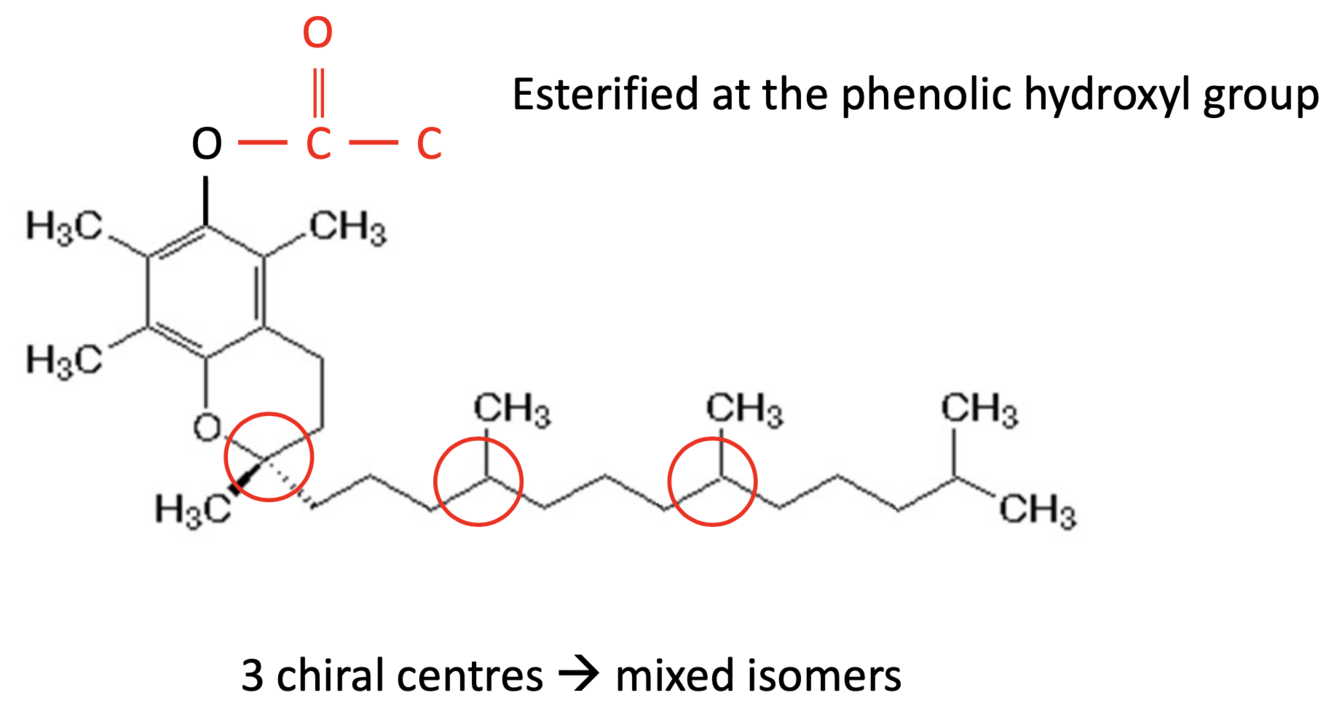 * Ester usually gets cleaved off during digestion to liberate the active form of a-tocopherol