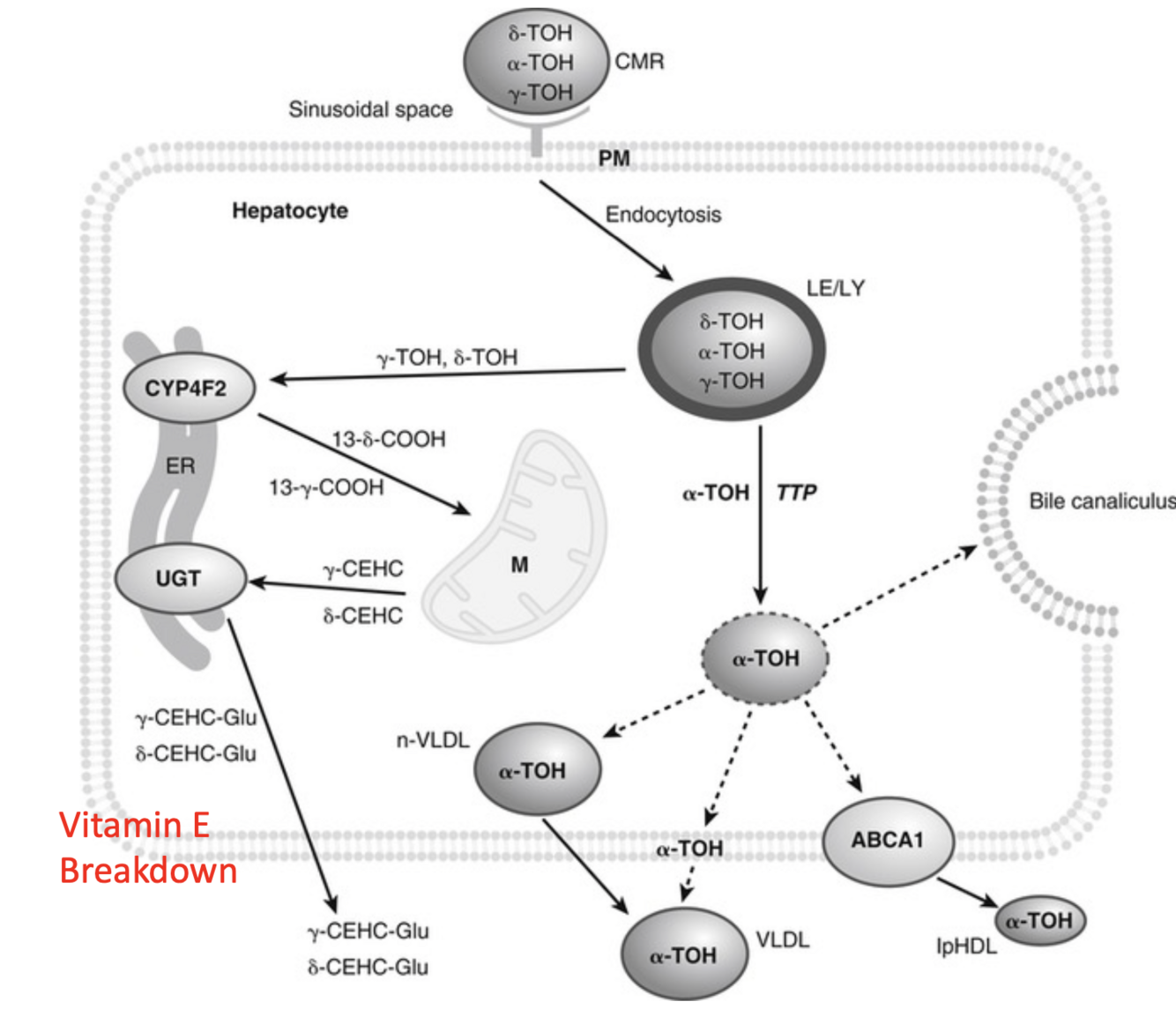 Intracellular metabolism of tocochromanol in the hepatocyte (what happens when vitE reaches the liver?)