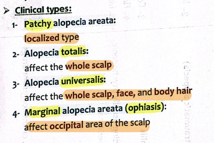 1- Alopecia totalis, universalis and ophiasis