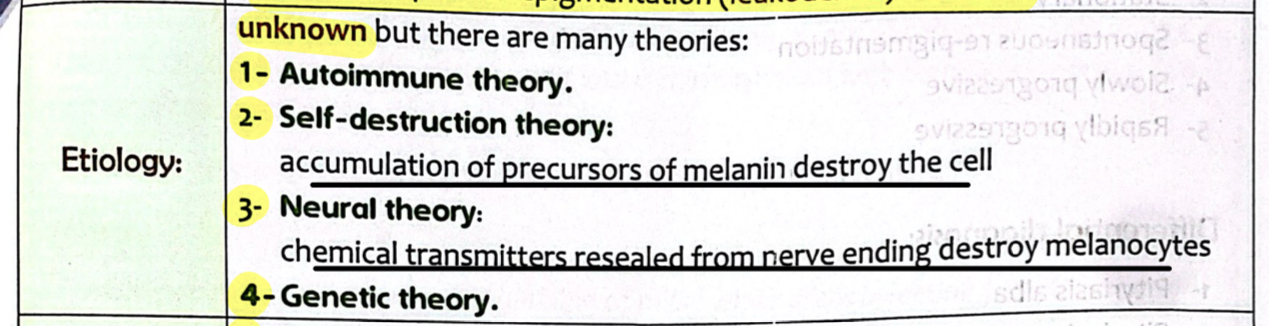 Casues of depigmentation