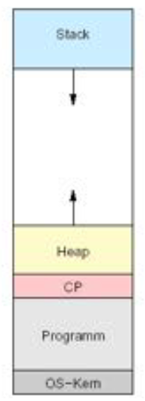 Bei Methodenaufruf werden die Rücksprungadresse und die lokalen Variablen in einem neuen Stackframe auf dem Stack gespeichert