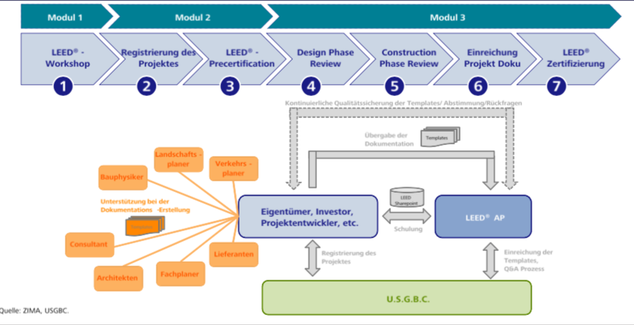 Modul 3 Design Phase Reciew-> Construction Phase Review -> Einreichung Projekt Doku -> LEED Zertifizierung