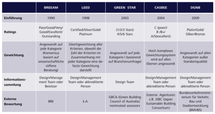 LEED standardisiertes Bewertungssystem aus USA des WGBC, freiwilliger nationaler Standard, Ziel: ressourcenwirtsamer und gesünder bauen