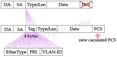 While using a packet analyzer, you notice four additional bytes being added to the packets in the Company network. Which protocol inserts a four byte tag into the Ethernet frame and recalculates CRC value?