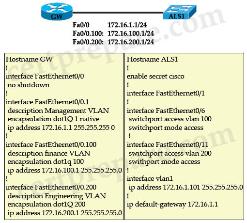 Note: The native VLAN must match on both sides of the trunk link for 802.1Q; otherwise the link will not work.