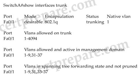 You administer the network shown above. You issue the show interfaces trunk command on SwitchA and receive the following output: