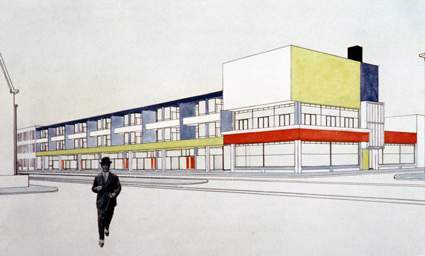 Mondrians Formensprache wurde bald auf Architektur übertragen.