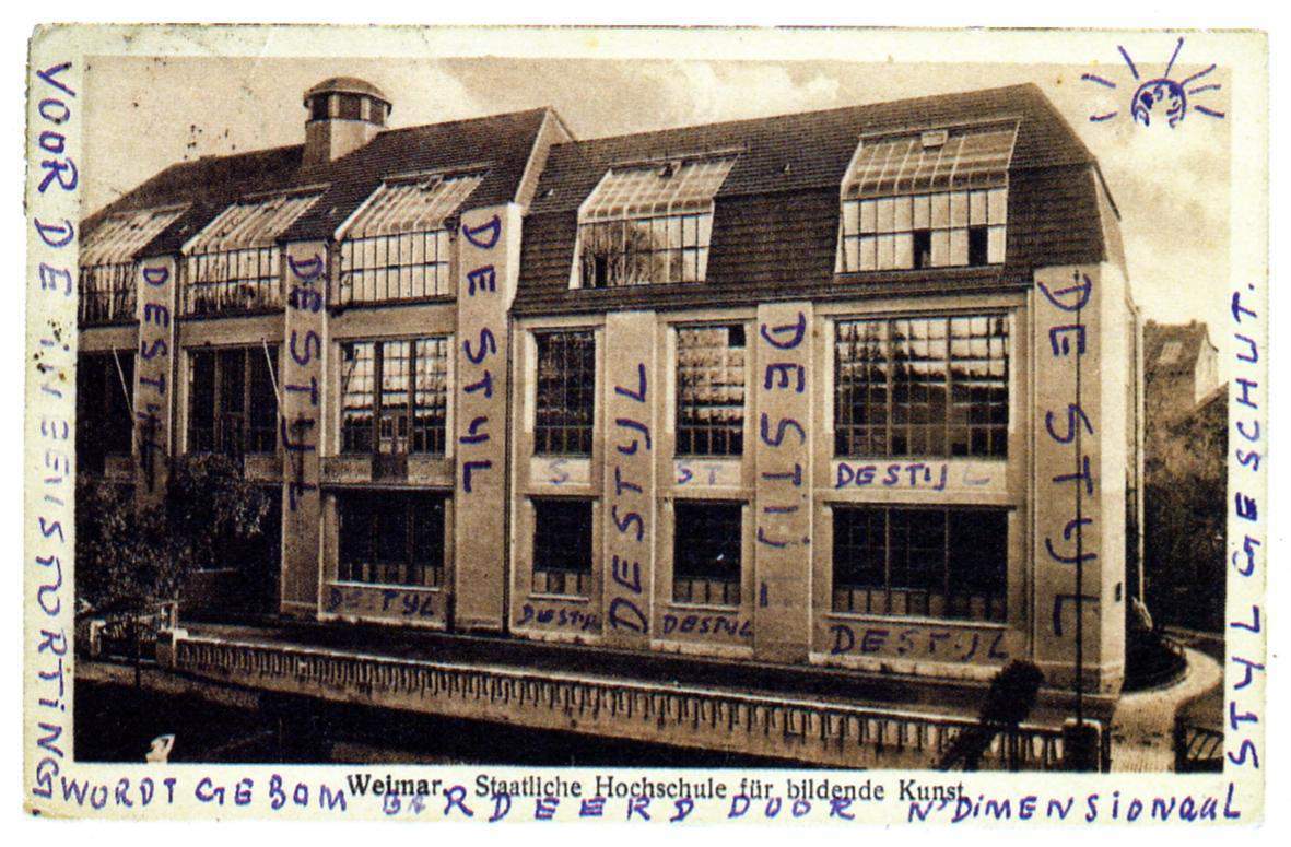 Neuorientierung der Schule unter dem Einfluss der de Stijl-Bewegung. (ab 1921 gab Theo van Doesburg als Lehrer).