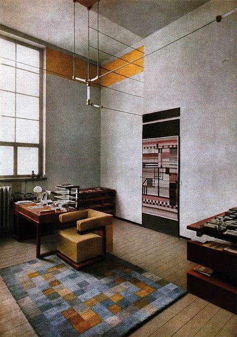 Walter Gropius und Werstätten, Einrichtung des Direktorenzimmers im Bauhaus. Internationale Ausstellung- Linien Konzept.