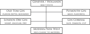 What are the four main styles of gin?