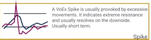 A voex spike is usually provoked by excessive movements. it indicates extreme resistance and usually resolves on the downside. usually short term.