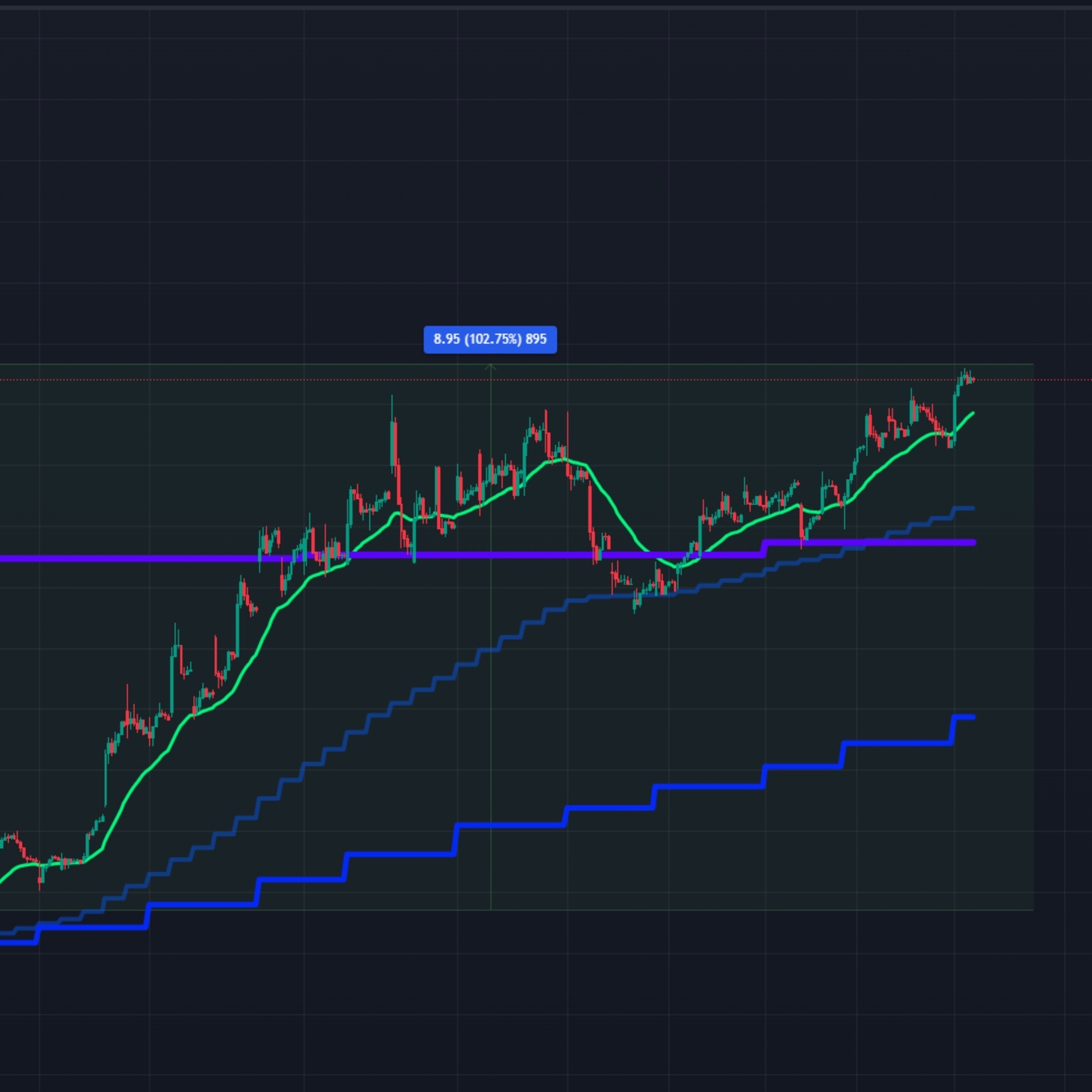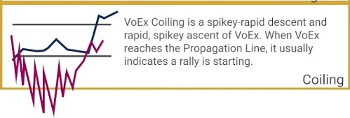 Voex coiling is a spikey-rapid descent and rapid, spikey ascent of voex. When voex reaches the propagation line, it usually indicates a rally is starting.