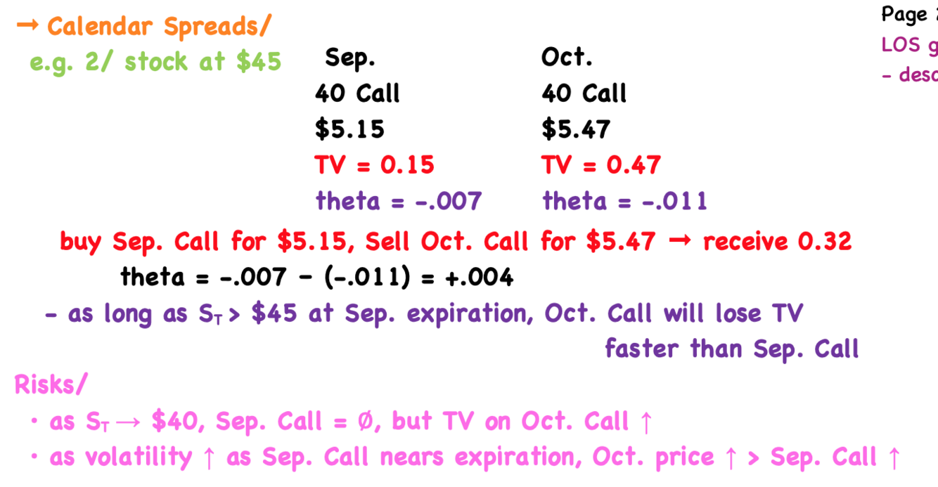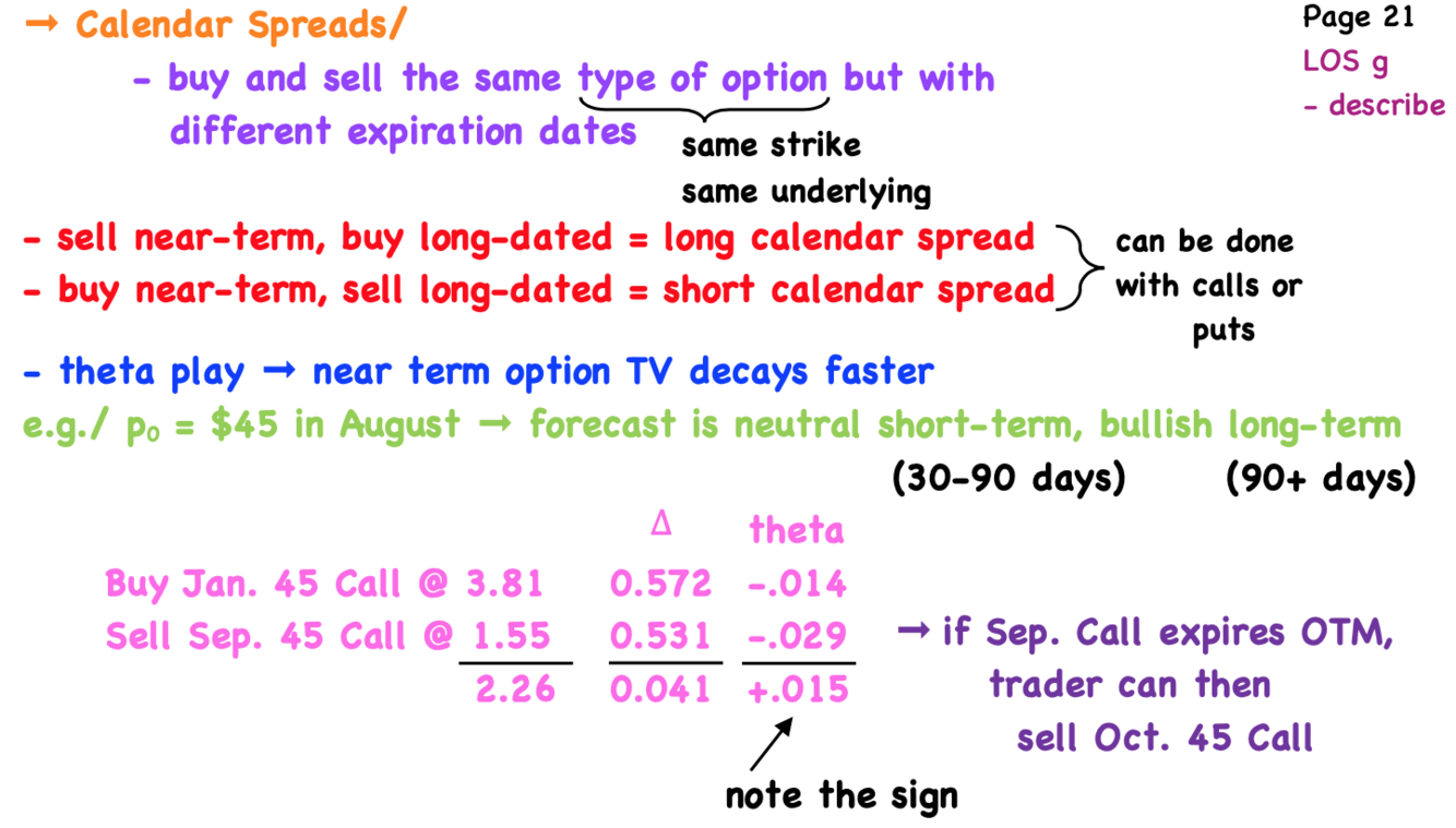 What is a calendar spread, what does it mean to be long/short calendar spread?
