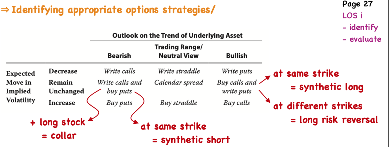 What is the trading strategy for if IV is expected to increase, decrease, stay same combined with your investment view