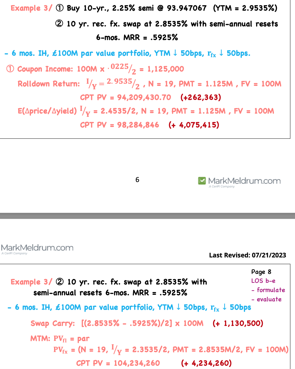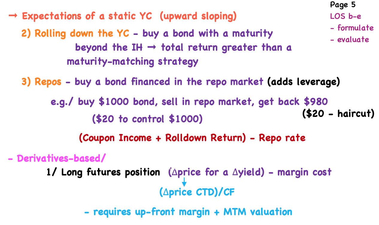 Example of riding YC using bond cash position vs derivatives? 3 components of cash bond position