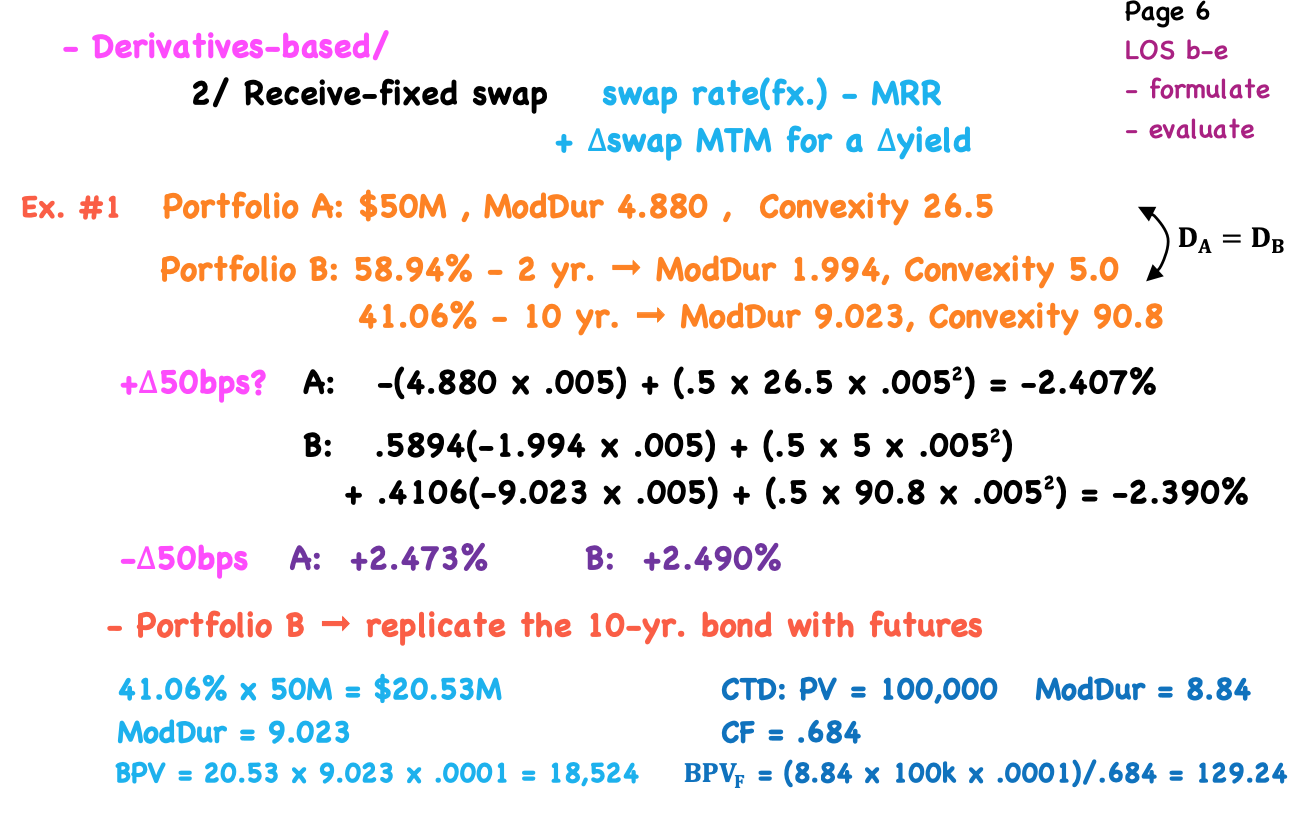 How can a received fixed swap add leverage, what is the profit? Example of change in yield effect on bullet vs barbell portfolio with same weighted duration?