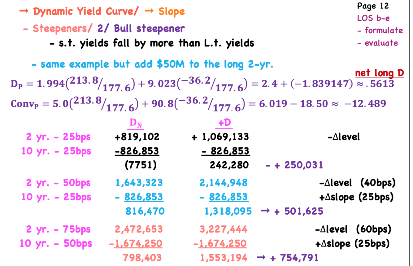 Bull steepner exmaple (chang in slope + drop in rates)? Want to be net positive duration