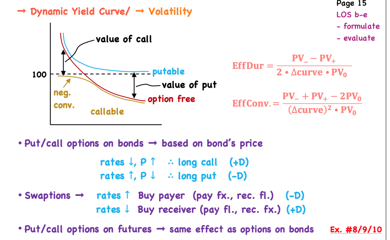How to use options and swaptions to profit from changing volatility? explain difference in convexity between putable and callable bonds?