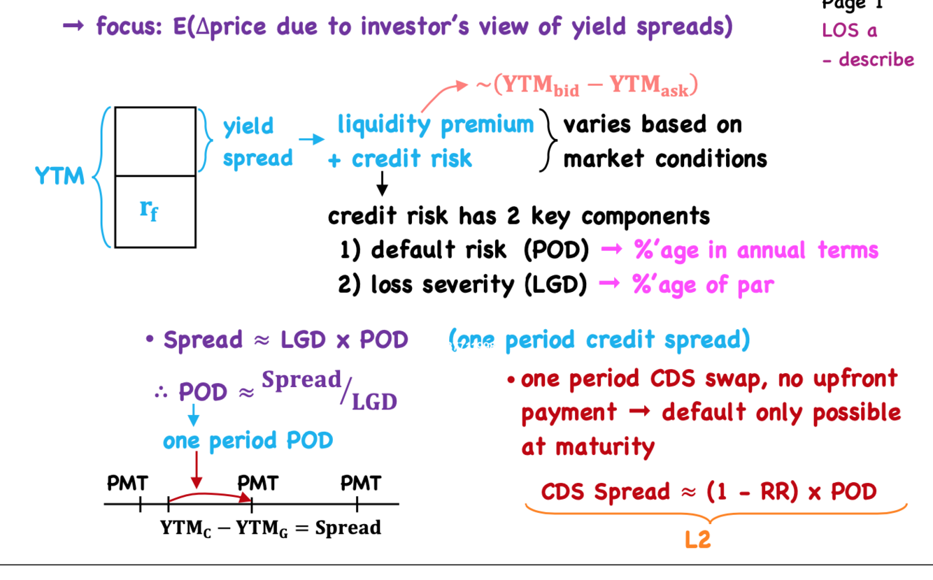 Change in price due to change in spread: what are the two components of credit risk?