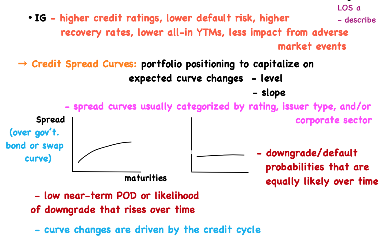Properties of IG bonds relative to HY in terms of rating, default risk, recovery rate, YTM, impact from adverse events?
