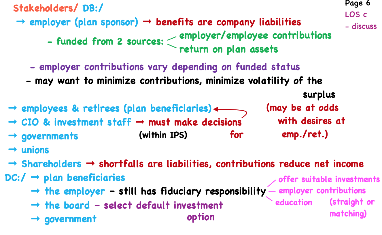 Who are the relevant stakeholders for a DC and DB pension plan?