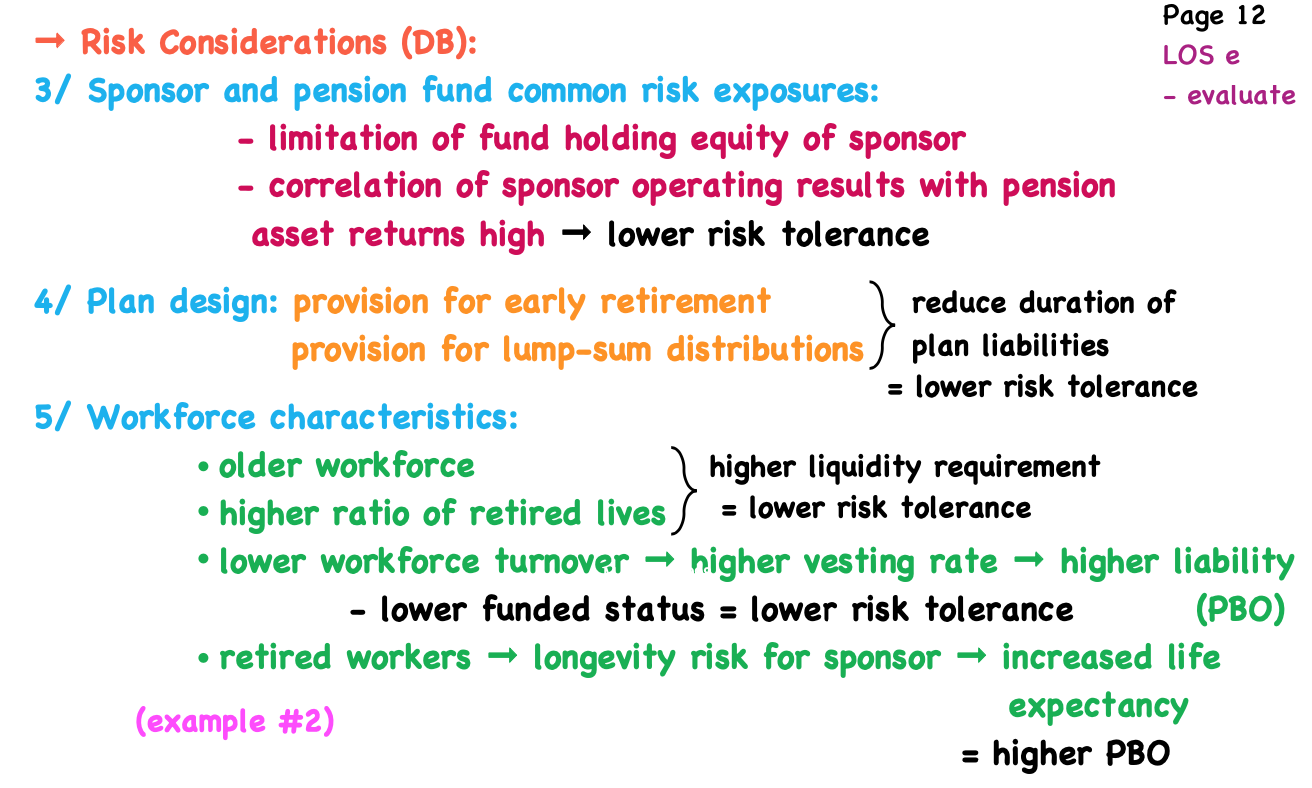 Risk considerations (DB): How does sponsor and pension plan common risk exposures impact risk tolerance? How does plan design and workplace characteristics impact risk tolerance?