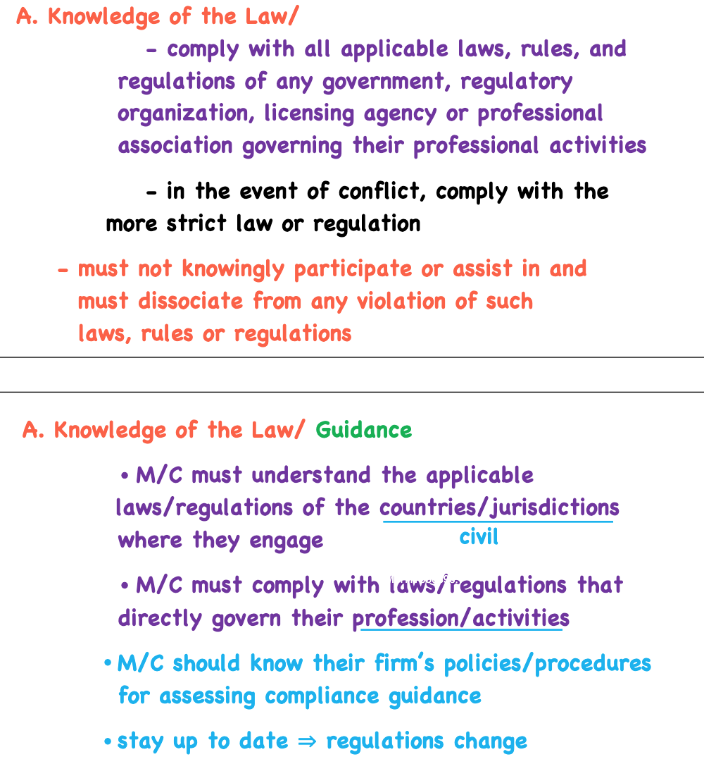 Knowledge of law: C/S vs applicable laws, Participation in or association with violations by others