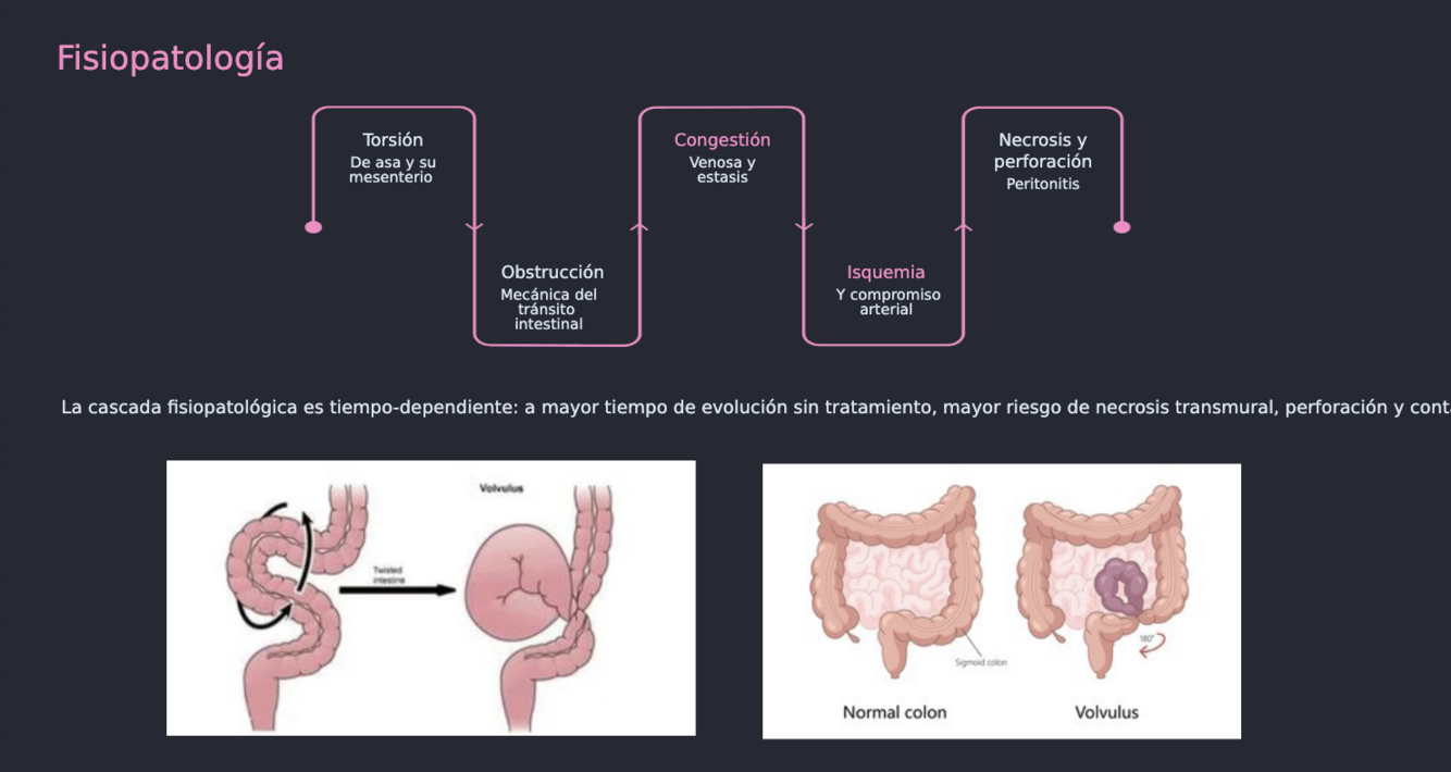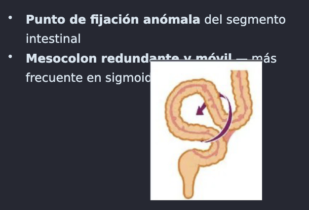 Torsión de un segmento del colon a través de su eje mesentérico, que provoca una oclusión intestinal en asa cerrada