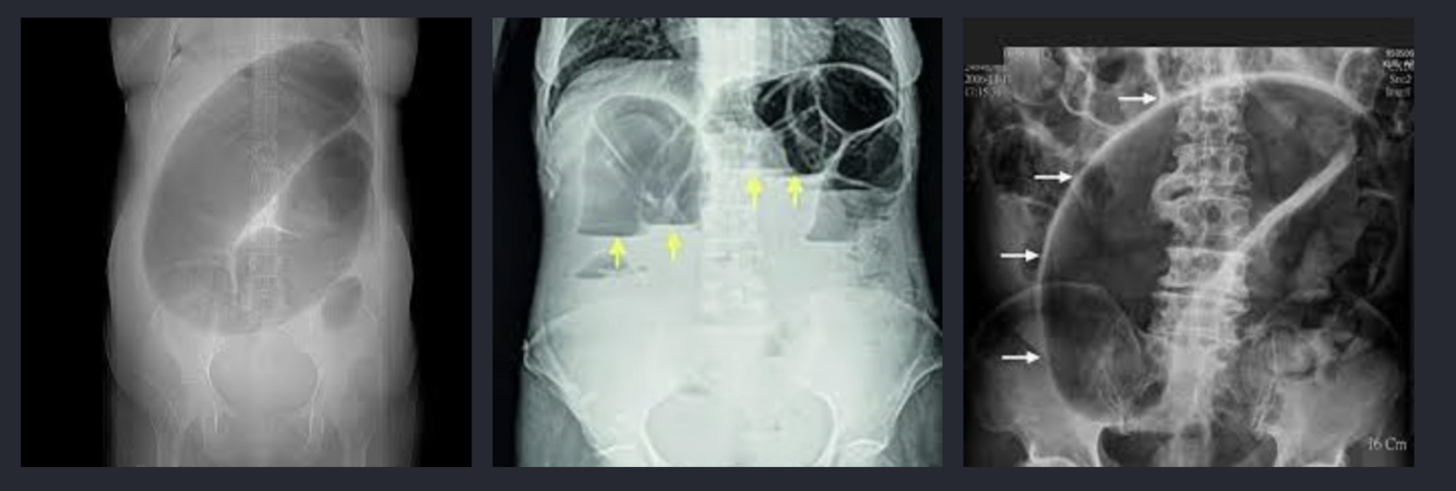 Rx simple de abdomen: imagen en “grano de café”, patrón clásico de sigmoides