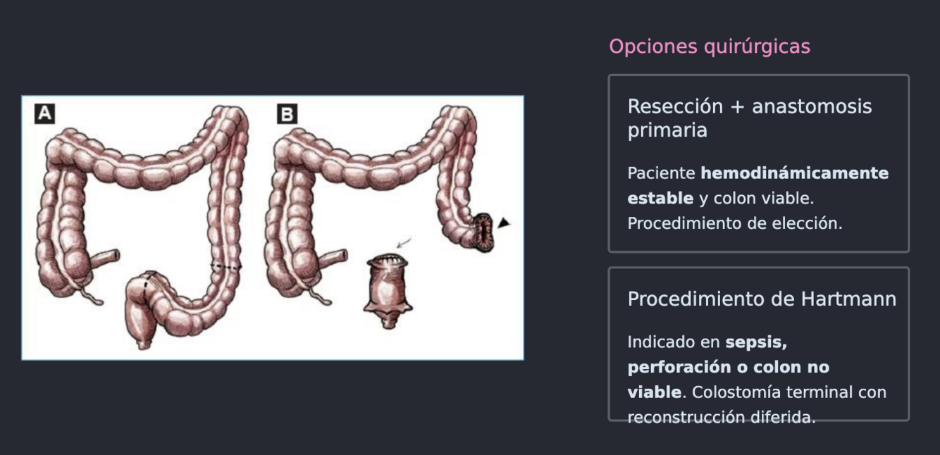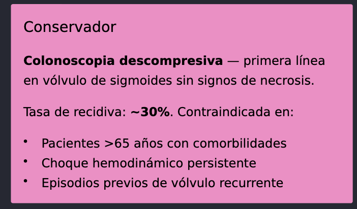 Endoscopia (sigmoides): diagnóstica y terapéutica, permite descompresión si no hay sospecha de necrosis
