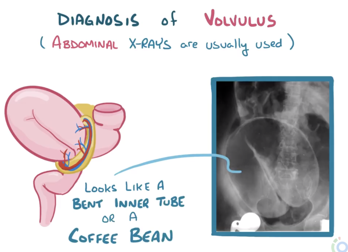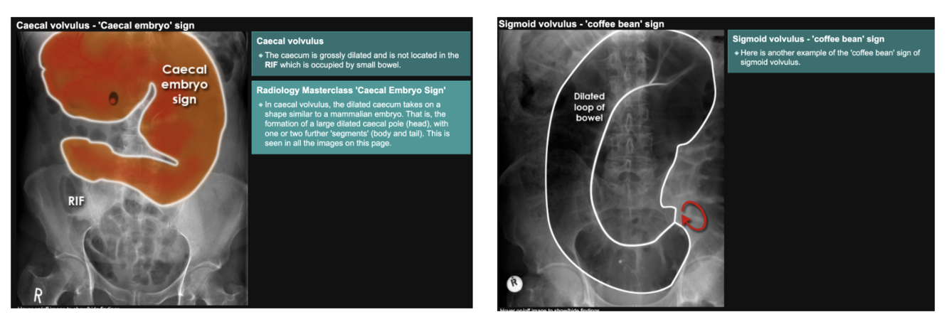 - in volvulus they will contain lots of air, which us abnormal