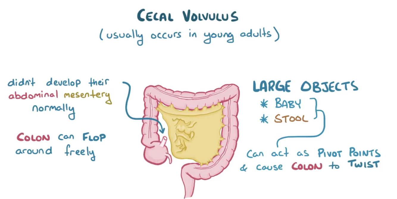 2 - constipation, where stool acts as a pivot point where bowels twist