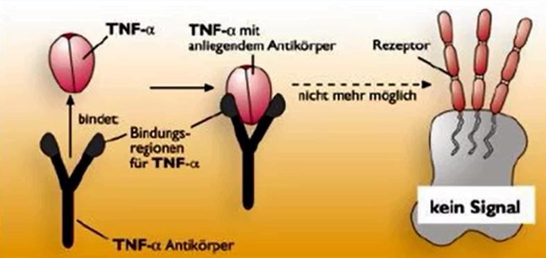 -> TNF-alpha bindet bevorzugt daran und nicht mehr an Zelle -> Keine Entzündung