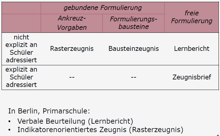 Arten von Verbalzeugnissen