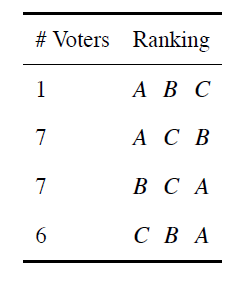 1) Each voter provides a ranking of the candidates
