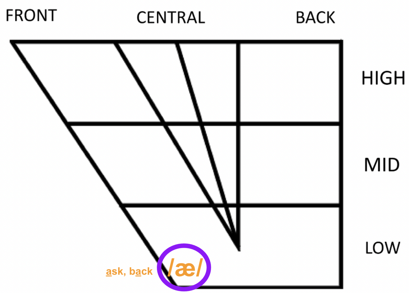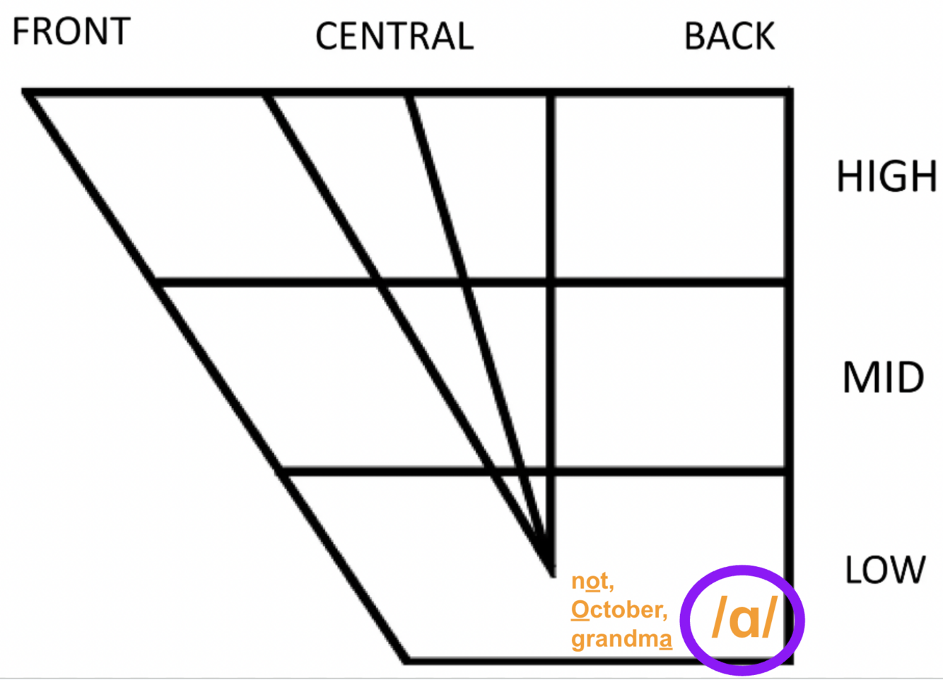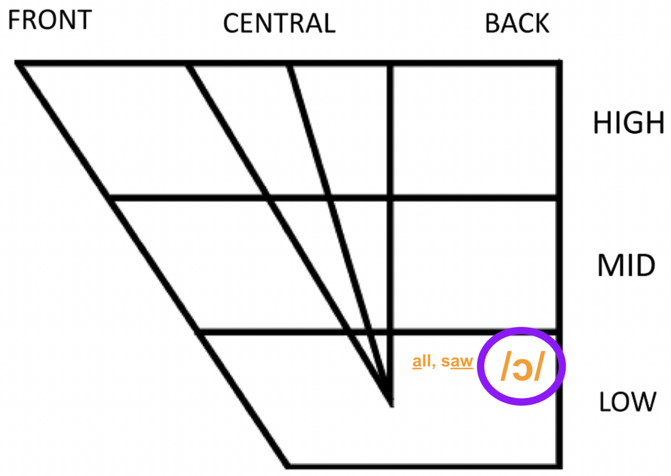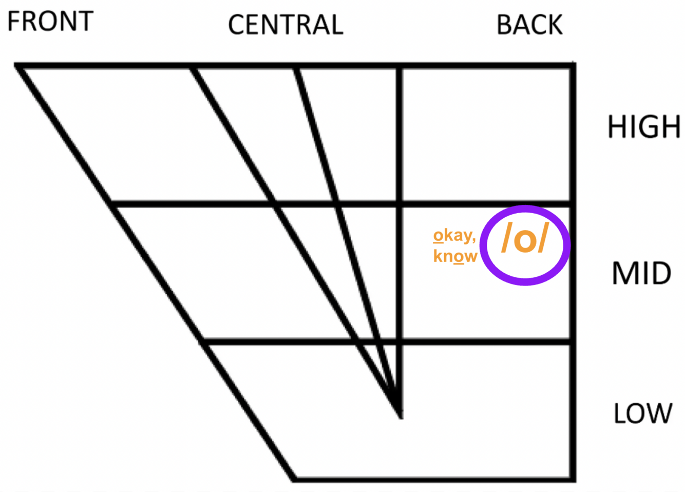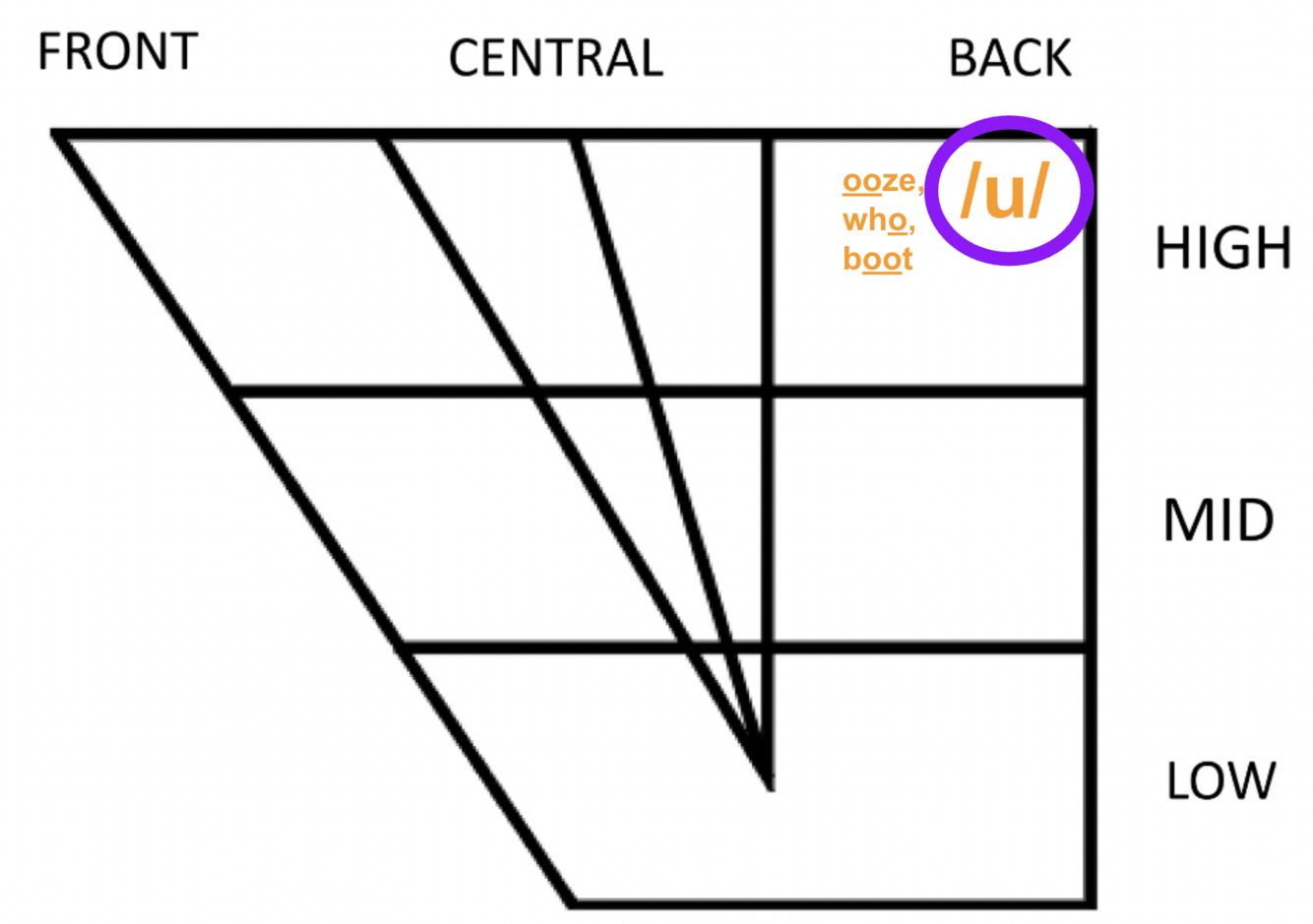 Tongue positioned near the back of the oral cavity/u/, / ʊ /, /o/, /ɔ/, /ɑ/