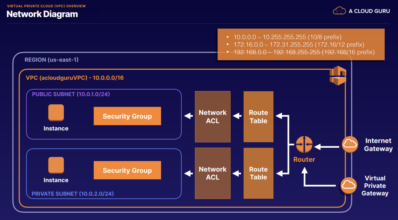 IP Address Range (CIDR Block): When creating a VPC, you define an IP address range for the VPC using Classless Inter-Domain Routing (CIDR) notation. This range determines the available IP addresses for your VPC’s subnets.