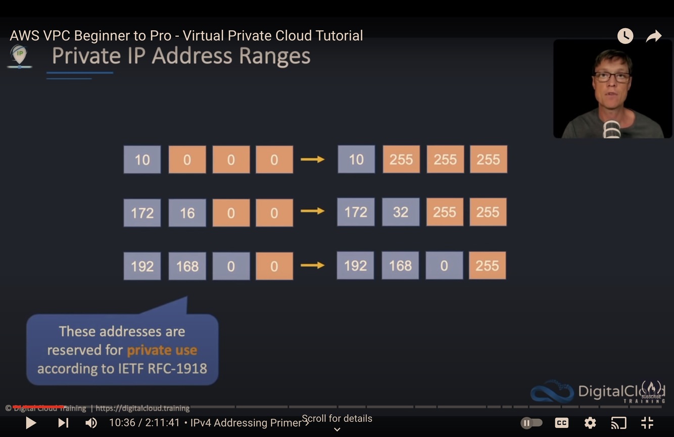 These addresses are reserved for private use according to IETF RFC-1918