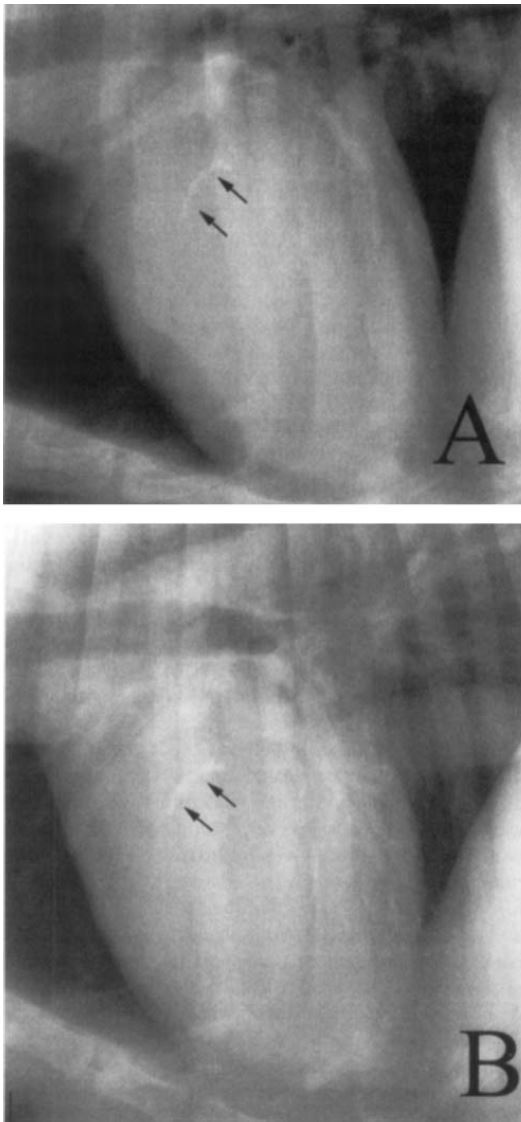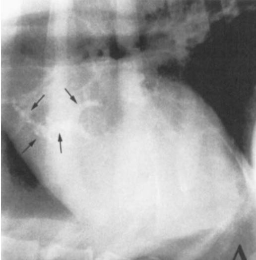 Douglass et al: Radiographic features of aortic bulb mineralization in dogs, what lateral is aortic bulb mineralization more apparent on?