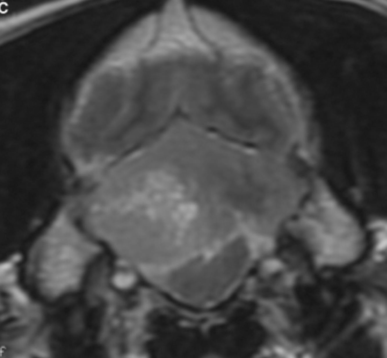 McConnell et al: MRI findings of medulloblastoma Polish sheepdog, what are the MRI findings off medulloblastomas?