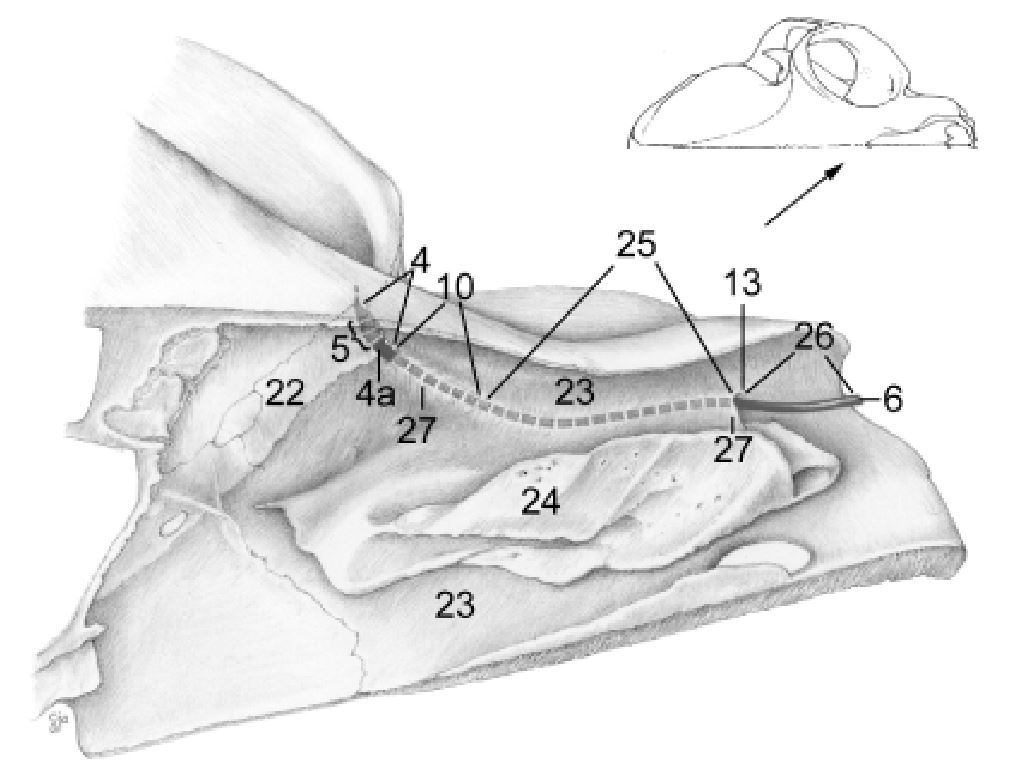 There is no bone protection on the distal part of the lacrimal sac. 4a in the picture.