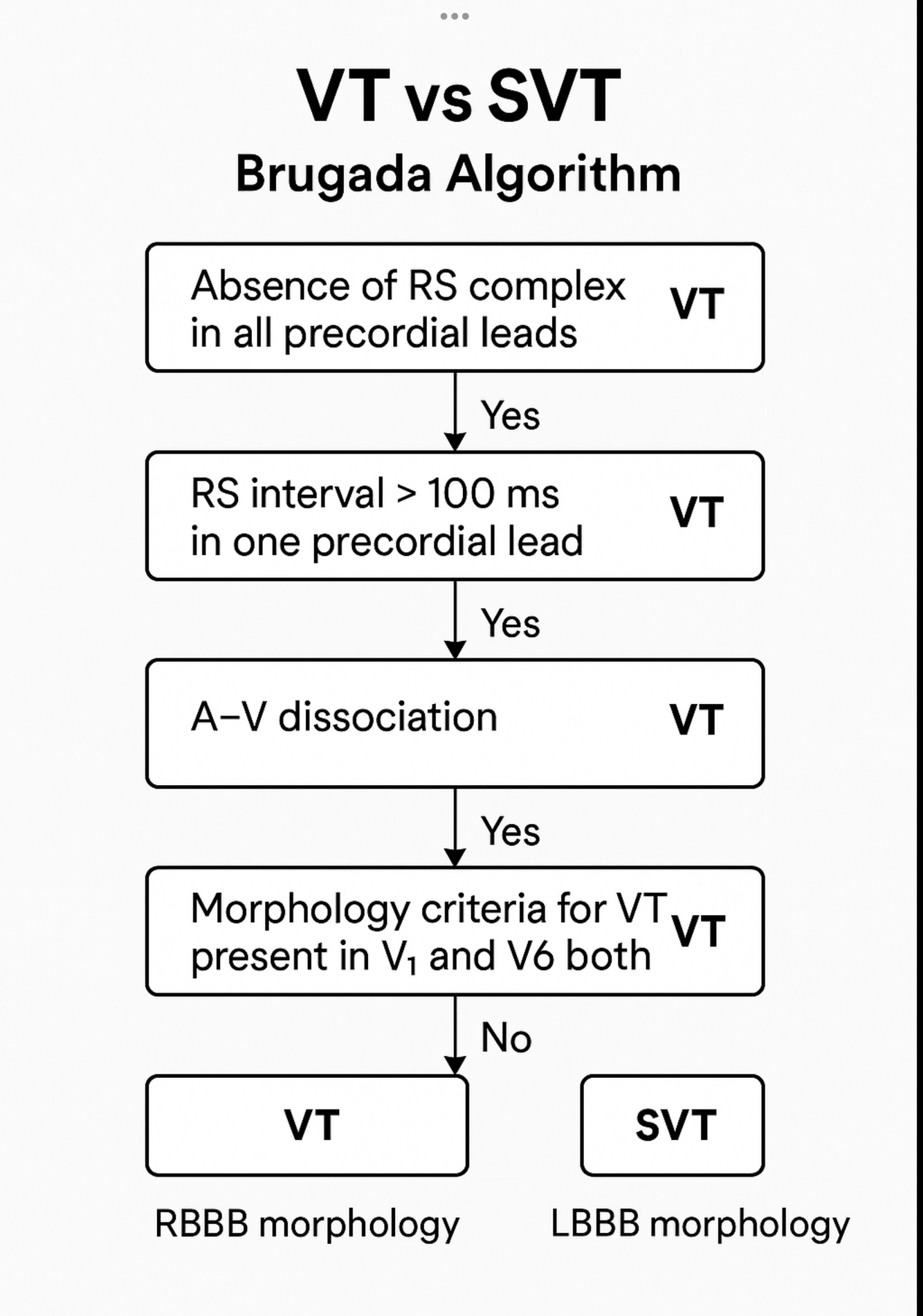 * If in doubt, Wide complex tachycardia should always be treated as VT (esp. if structural heart disease).