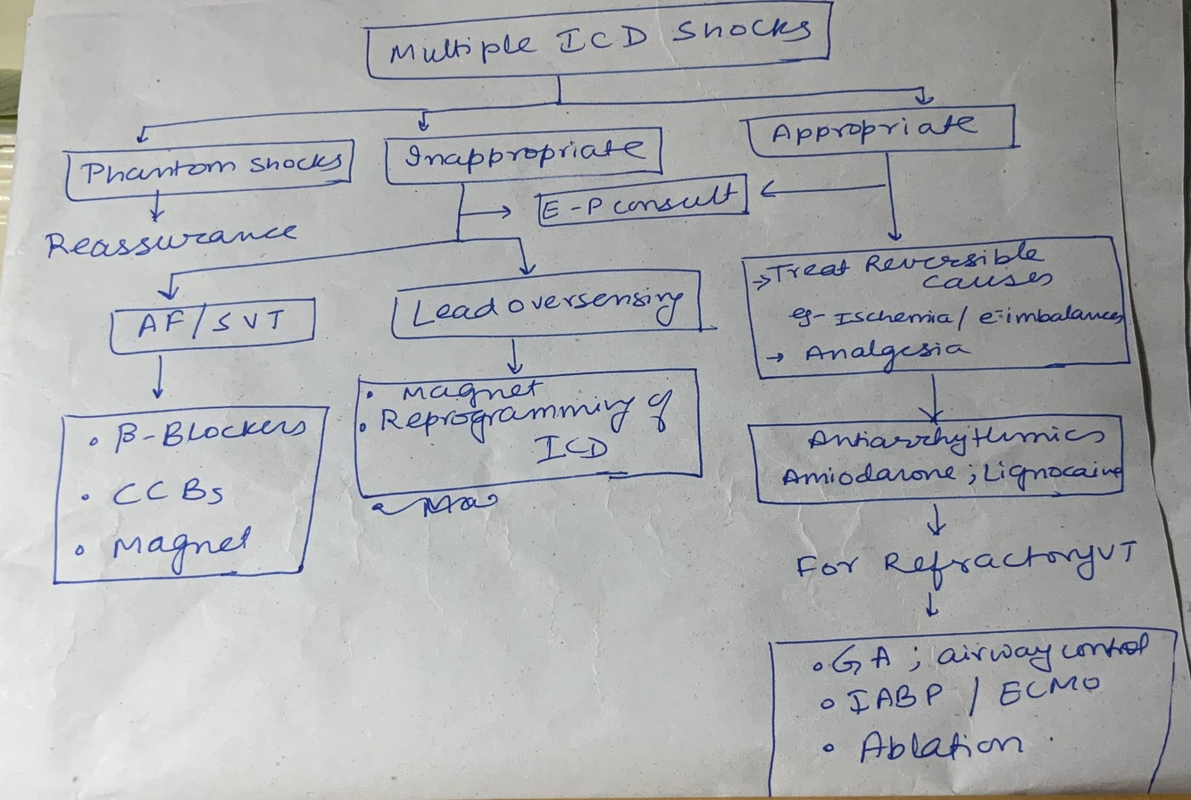 ->Recurrent shocks and episodes of cardiac arrests→ myocardial injury + pain → ⬆️catecholamines →proarrhythmogenic