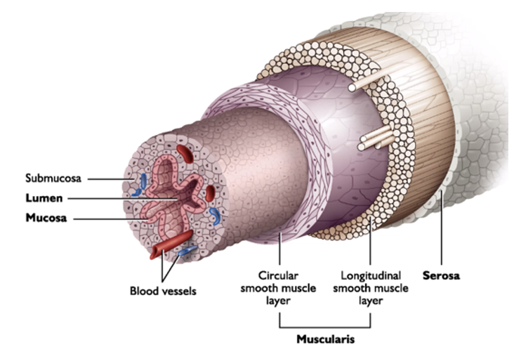 Common tissue layers (in vagina, cervix, uterus, oviducts)